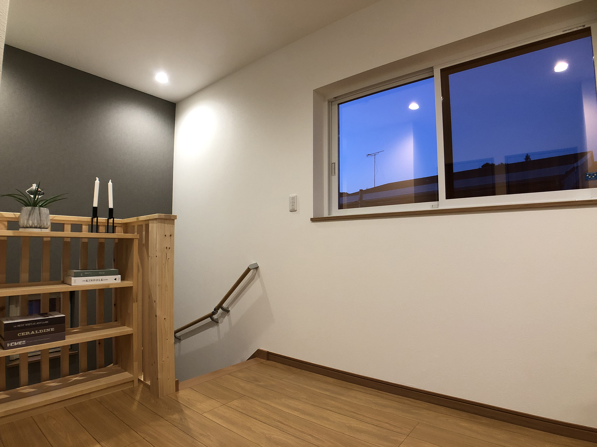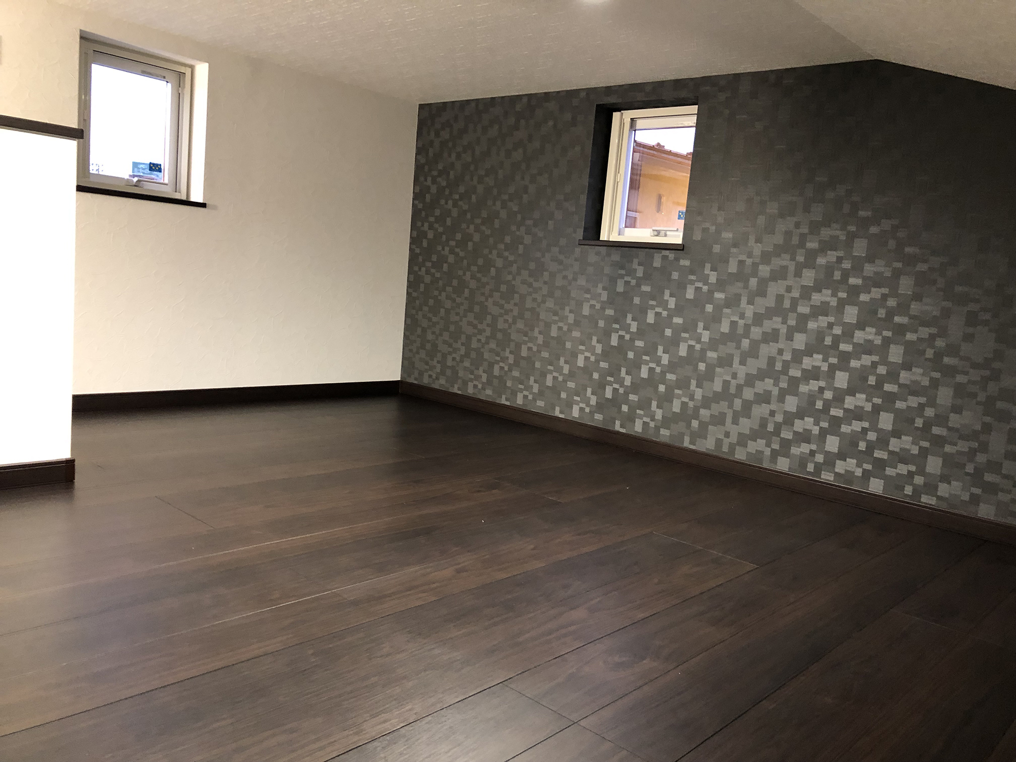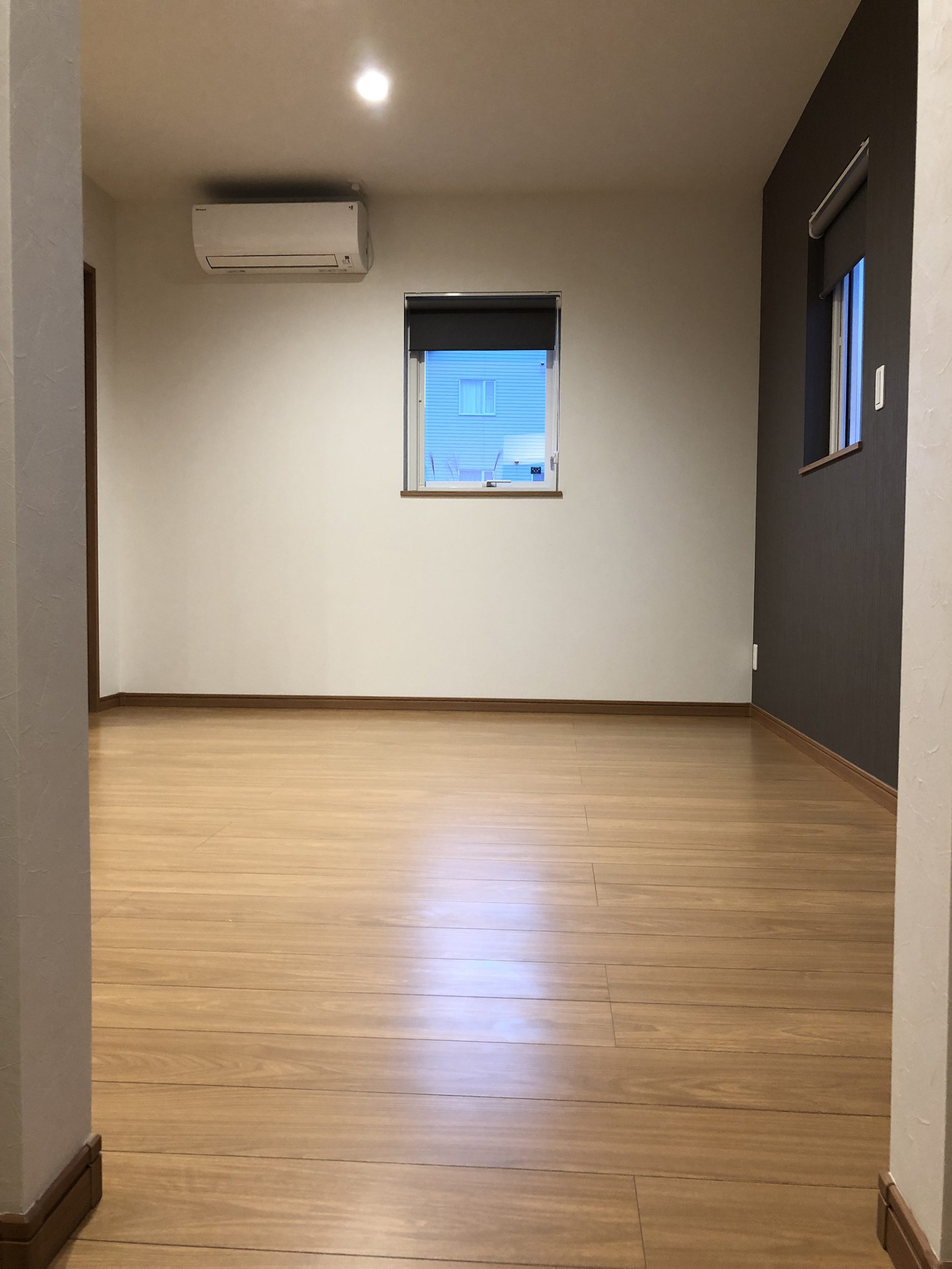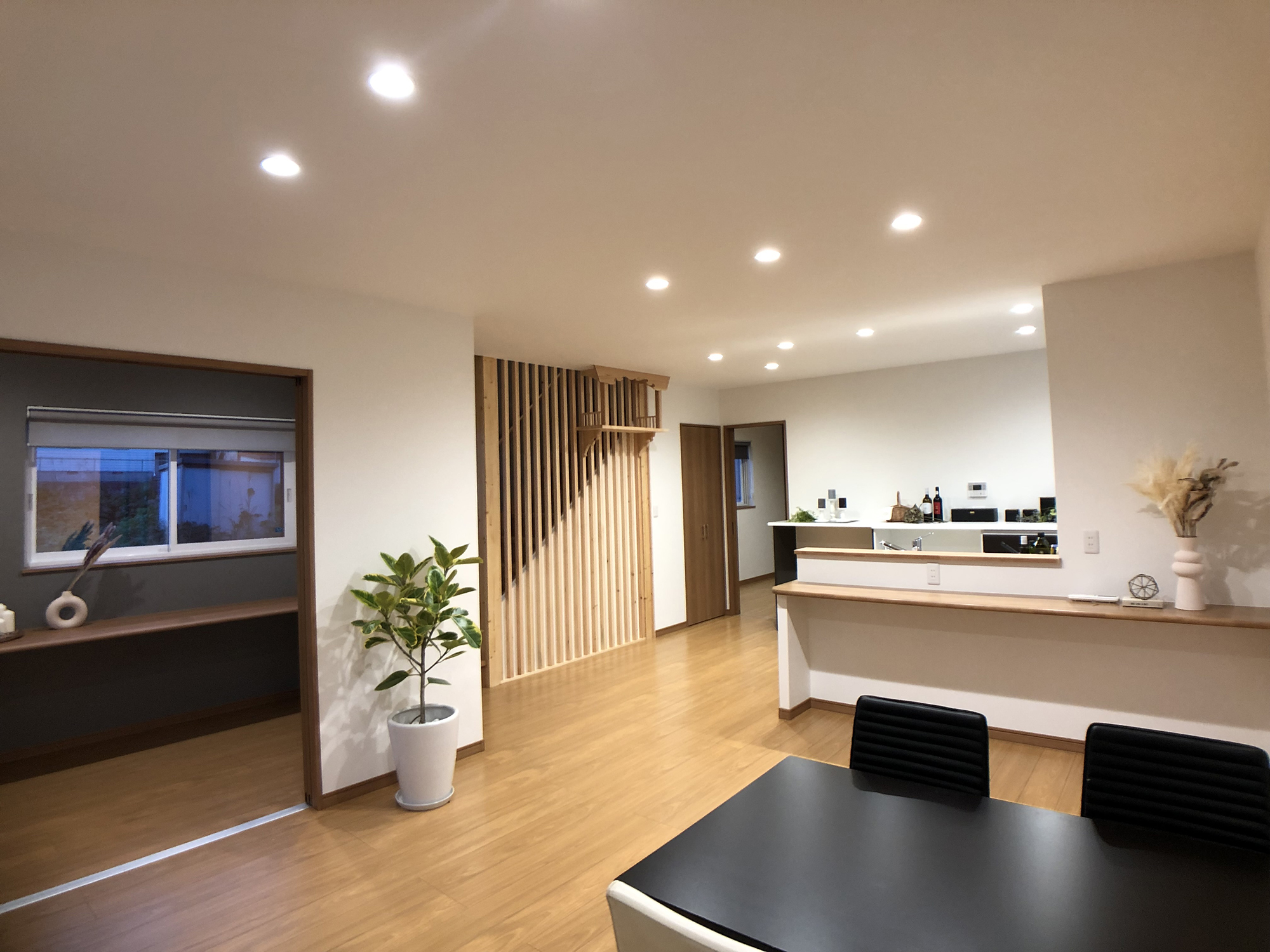 外観の黒を基調にしたシンプルで洗練されたデザインと、内装の多様性と機能性の両立。室内の各部屋は2色の壁紙を用いて、モダンで個性的な空間を演出しています。特にリビングは白とブラウンを基調とし、広々とした落ち着きのある雰囲気を提供しています。多くの部屋を持つことで、様々なライフスタイルや家族構成に対応できる柔軟性のある住まいを実現し、家族みんなの快適さと利便性を追求しています。