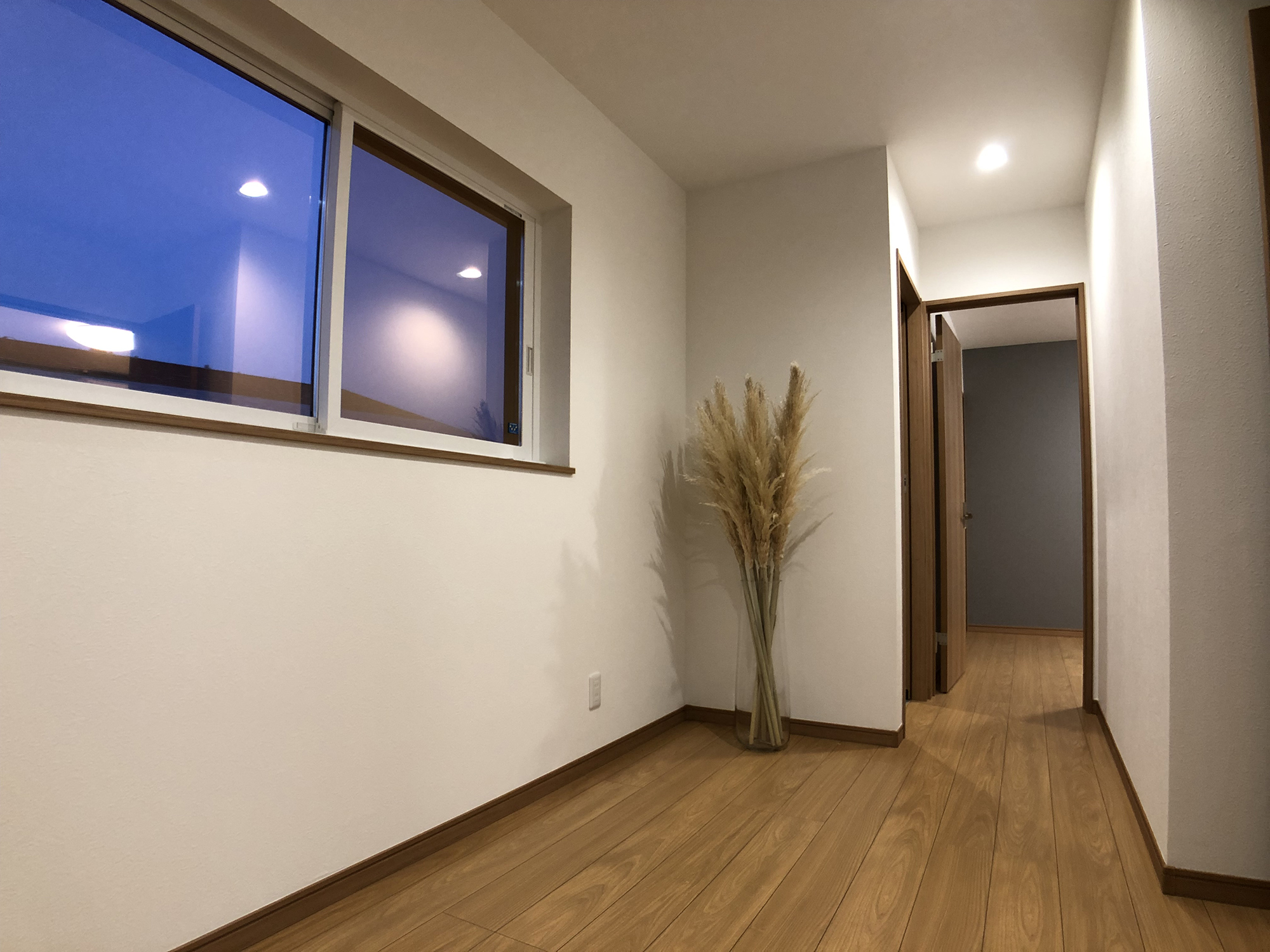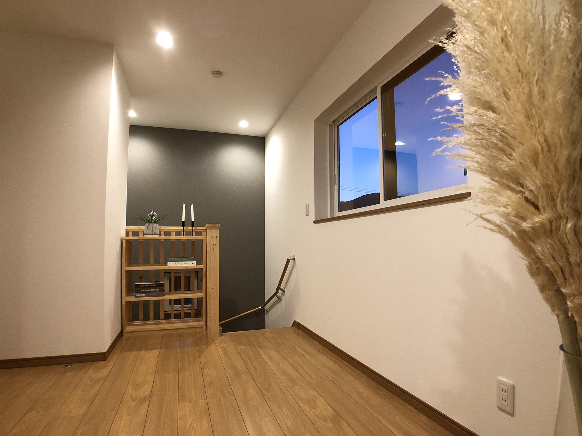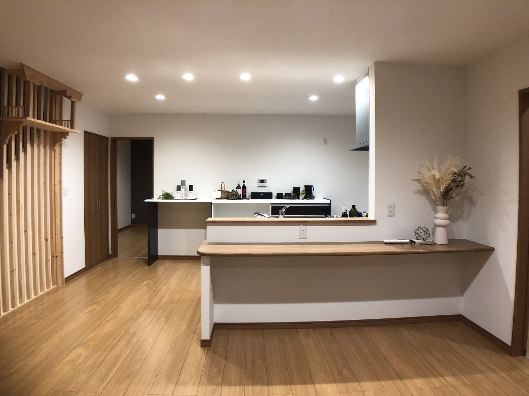 外観の黒を基調にしたシンプルで洗練されたデザインと、内装の多様性と機能性の両立。室内の各部屋は2色の壁紙を用いて、モダンで個性的な空間を演出しています。特にリビングは白とブラウンを基調とし、広々とした落ち着きのある雰囲気を提供しています。多くの部屋を持つことで、様々なライフスタイルや家族構成に対応できる柔軟性のある住まいを実現し、家族みんなの快適さと利便性を追求しています。