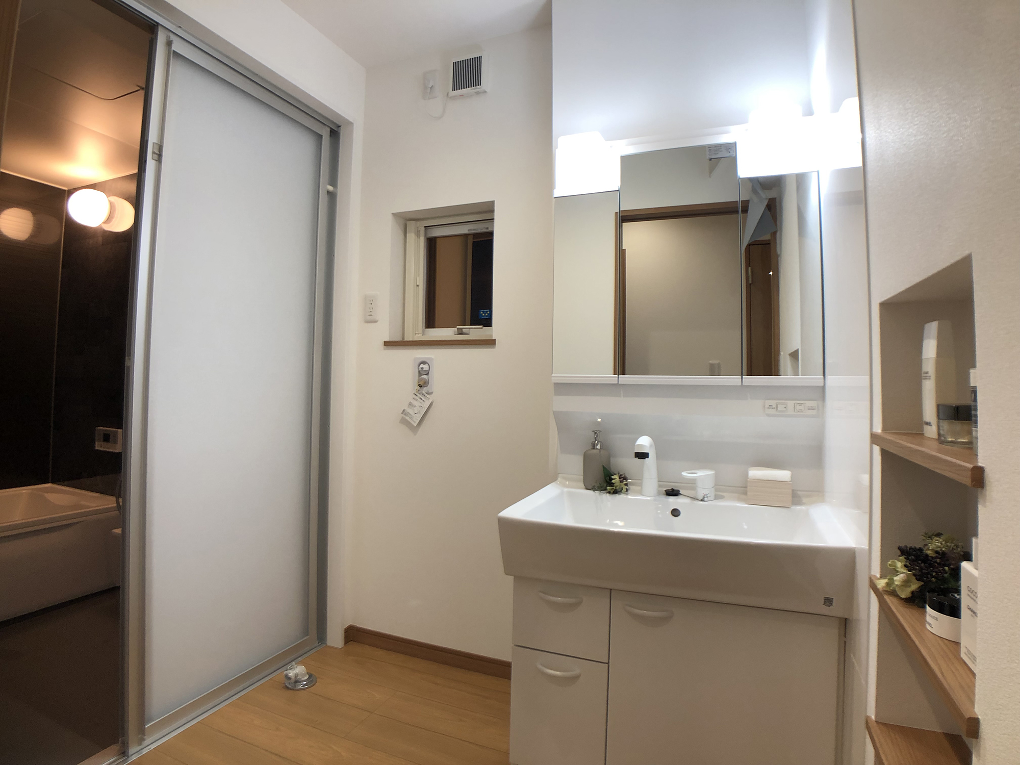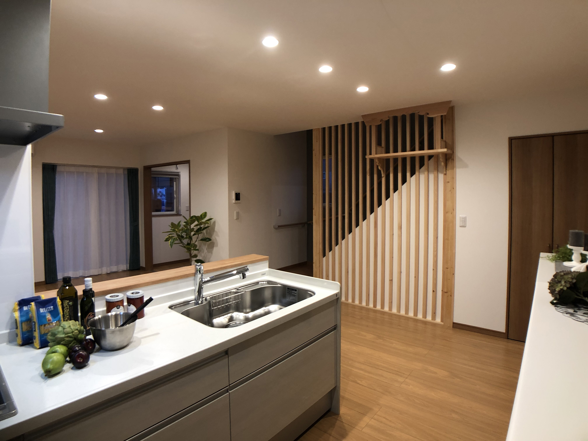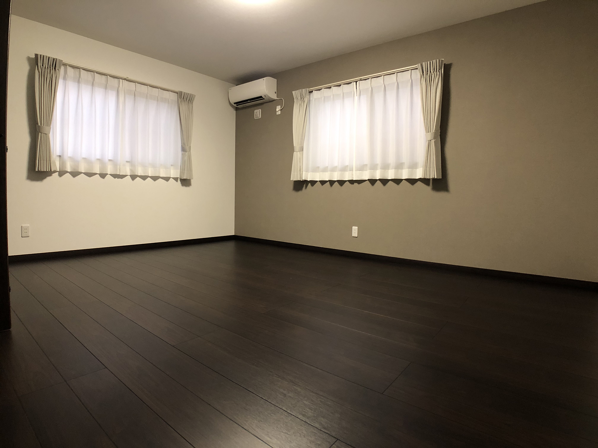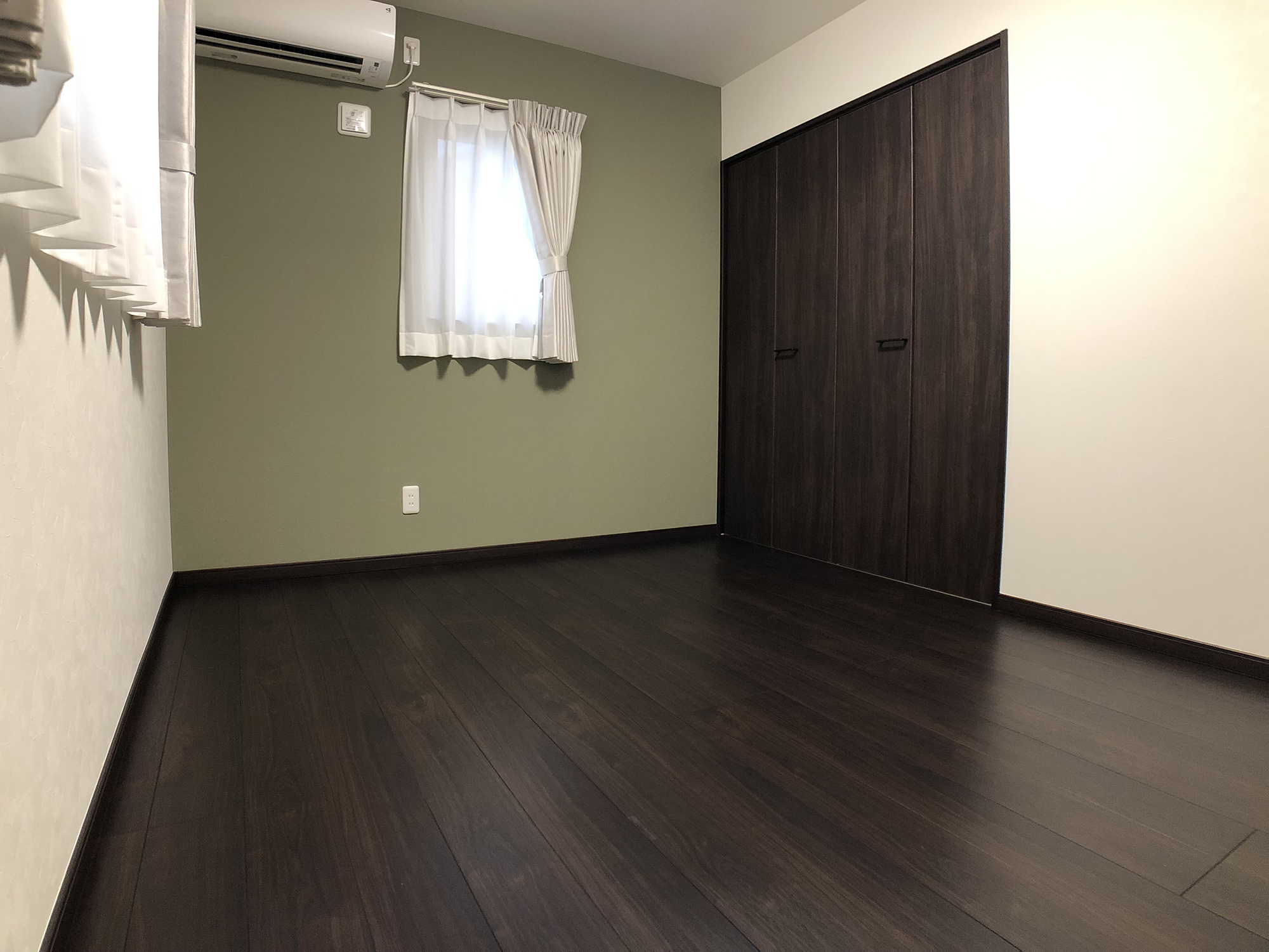 外観の黒を基調にしたシンプルで洗練されたデザインと、内装の多様性と機能性の両立。室内の各部屋は2色の壁紙を用いて、モダンで個性的な空間を演出しています。特にリビングは白とブラウンを基調とし、広々とした落ち着きのある雰囲気を提供しています。多くの部屋を持つことで、様々なライフスタイルや家族構成に対応できる柔軟性のある住まいを実現し、家族みんなの快適さと利便性を追求しています。