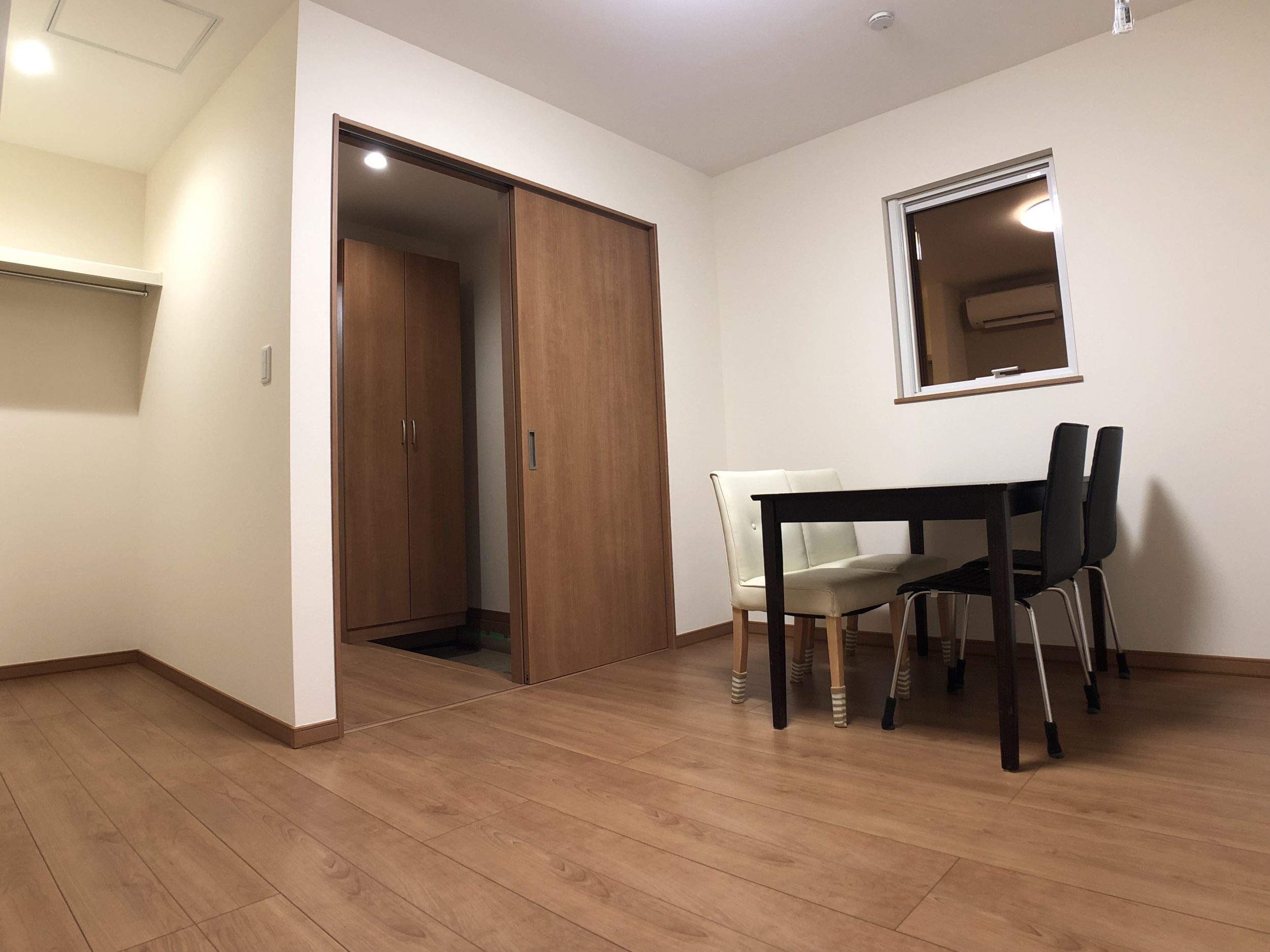 白を基調としたシンプルで清楚な空間を作り出すことです。平屋の設計により段差をなくし、広々とした開放的な住まいを実現しています。内装は白壁と色味を抑えたフローリングで統一し、明るく清潔感のある雰囲気を演出。間仕切りを少なくすることで、視覚的な広がりを持たせ、オーナーさんに快適で自由な生活空間を提供しています。このデザインは、シンプルながらも洗練された美しさと機能性を両立させた住まいを造りました。