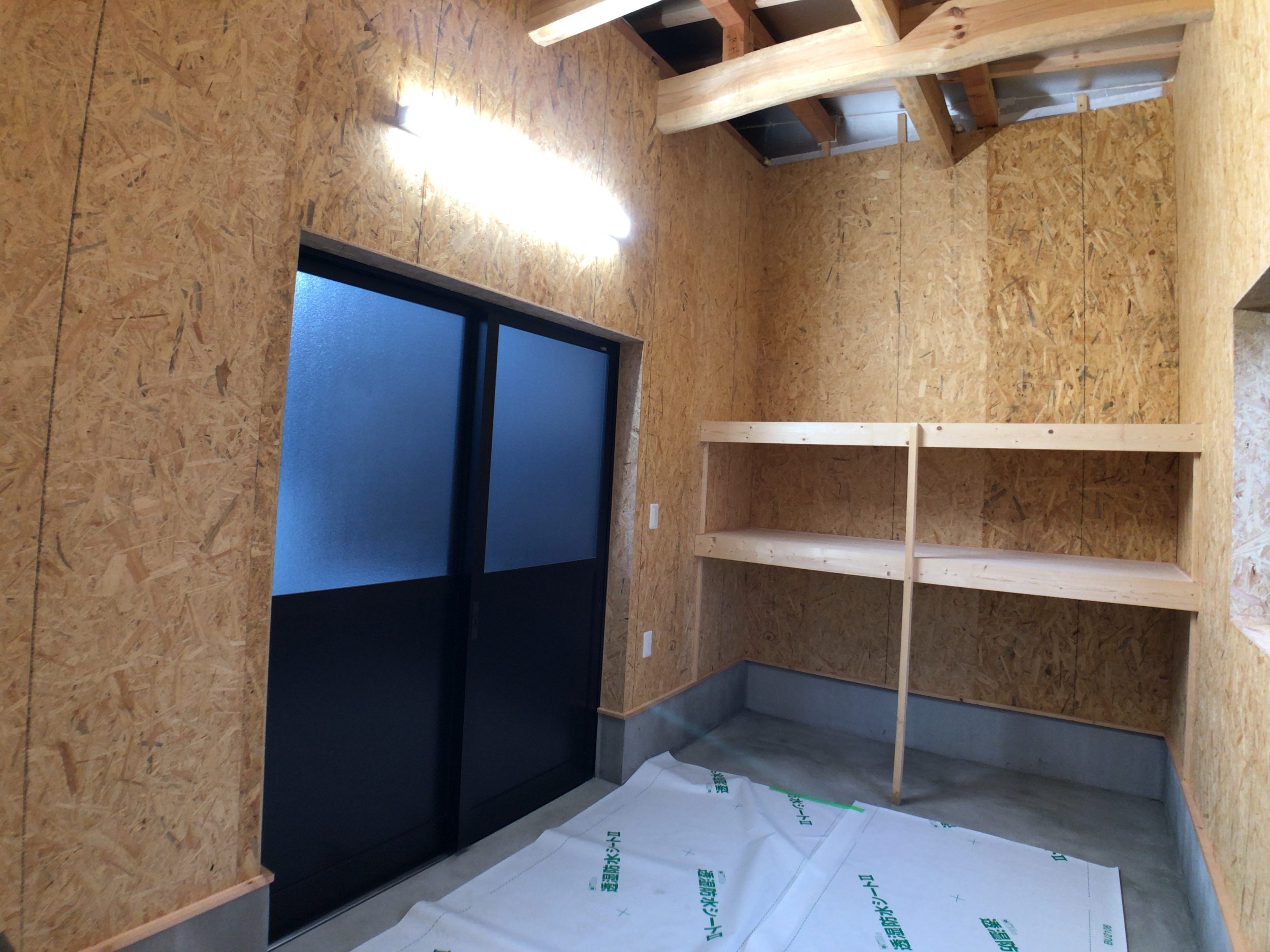 作業場と住居を一体化させ、効率的で快適な生活空間を創造することです。黒で統一された外観はモダンで洗練された印象を与え、作業場の開放的なデザインは実用性を重視しています。むき出しのボードや梁がインダストリアルな雰囲気を演出し、機能性を高めています。住居部分はシンプルで動線が良く、開放感がある設計により、住まう人にストレスの少ない快適な暮らしを提供します。