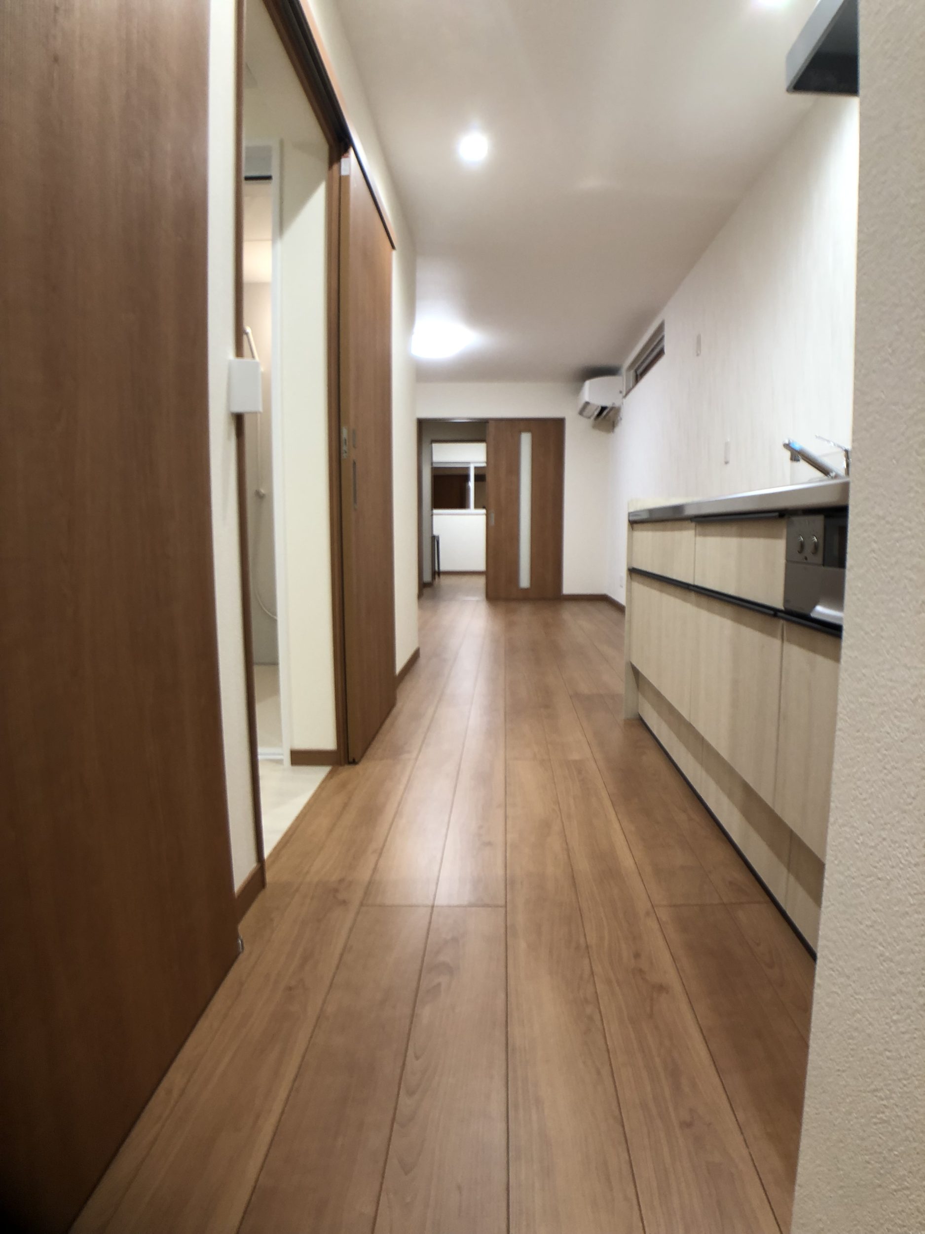 白を基調としたシンプルで清楚な空間を作り出すことです。平屋の設計により段差をなくし、広々とした開放的な住まいを実現しています。内装は白壁と色味を抑えたフローリングで統一し、明るく清潔感のある雰囲気を演出。間仕切りを少なくすることで、視覚的な広がりを持たせ、オーナーさんに快適で自由な生活空間を提供しています。このデザインは、シンプルながらも洗練された美しさと機能性を両立させた住まいを造りました。