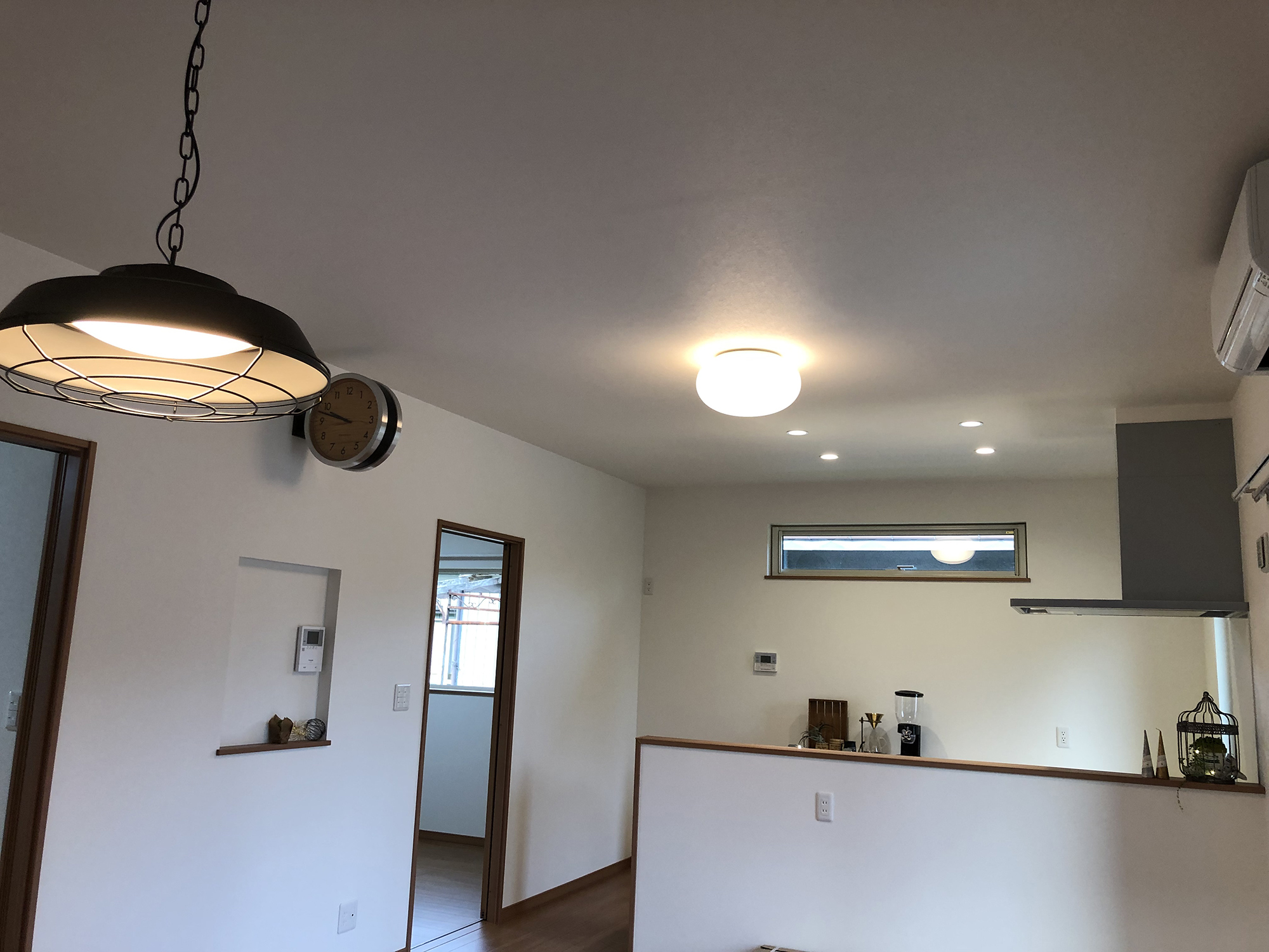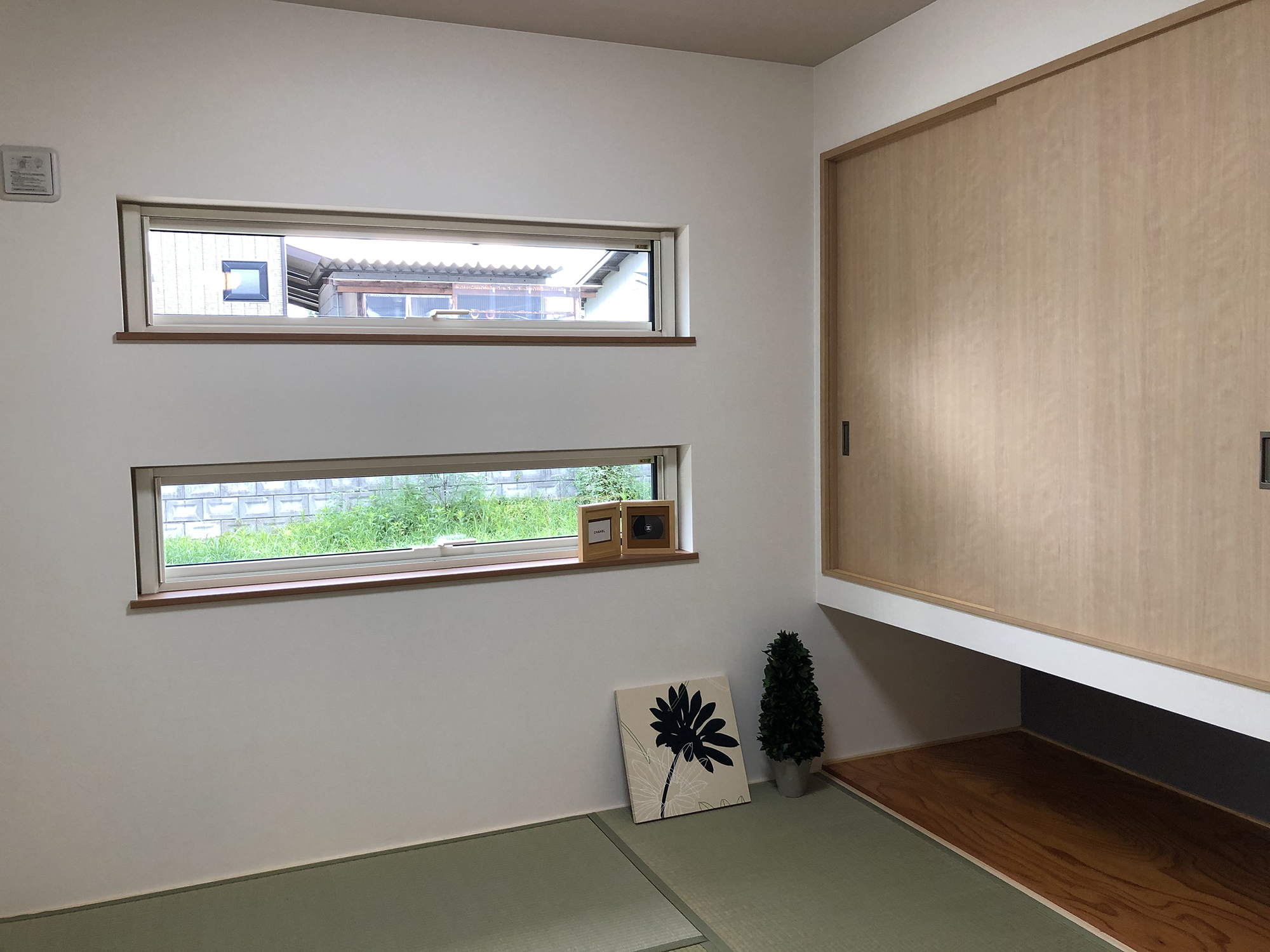 モダンなデザインと自然の温もりを調和させた住まいを目指して設計されました。外観は黒い壁面と重厚感のあるウッドの玄関で、シンプルでありながら高級感を演出。室内は白壁と濃いめの木目フローリングで統一され、畳部屋も備えることで、伝統的な和の要素を取り入れつつ、居心地の良さを重視しました。また、ウッドデッキでは、家族が自然を楽しみながらリラックスできるスペースを提供し、内外で快適に過ごせるよう配慮されています。このように、モダンさと自然の調和、快適さと居心地の良さを追求した設計が特徴です。