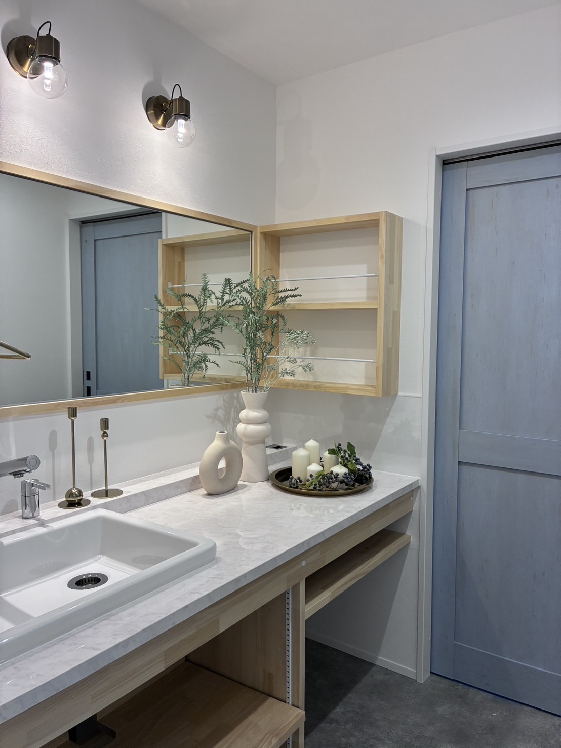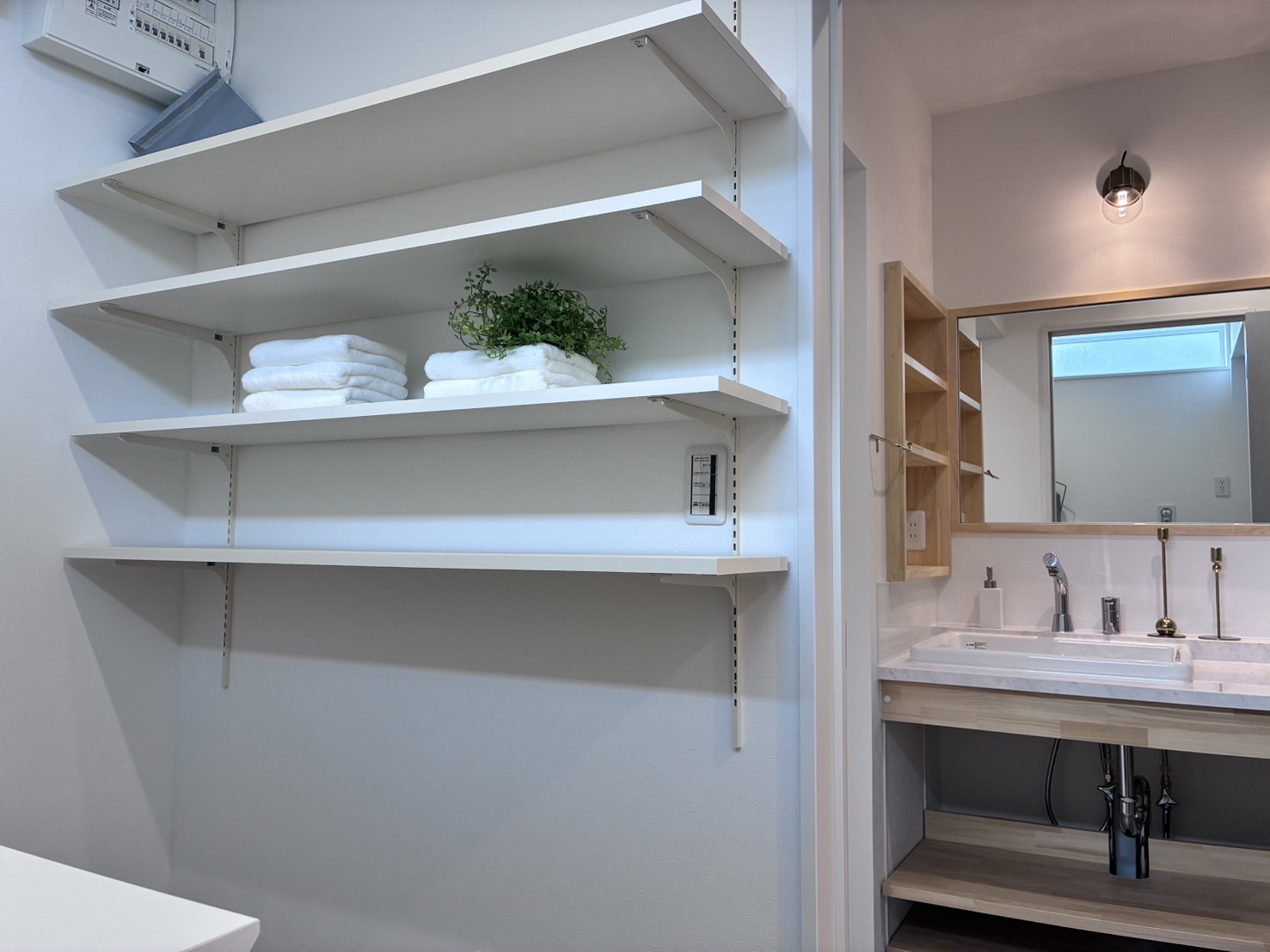 脱衣と洗面を分け、来客時も安心。