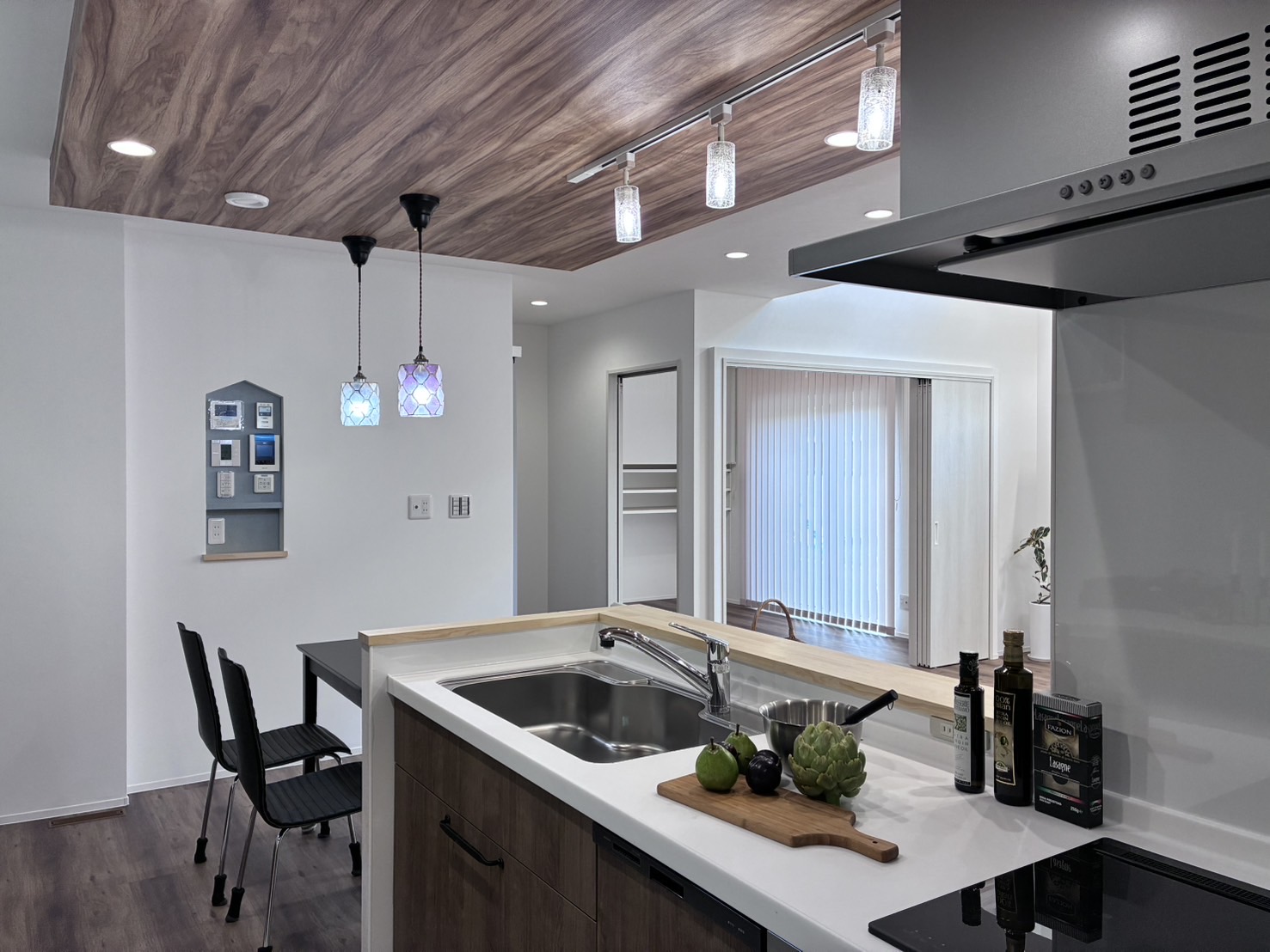 土間収納、パントリー、キッチンを結ぶ家事動線。