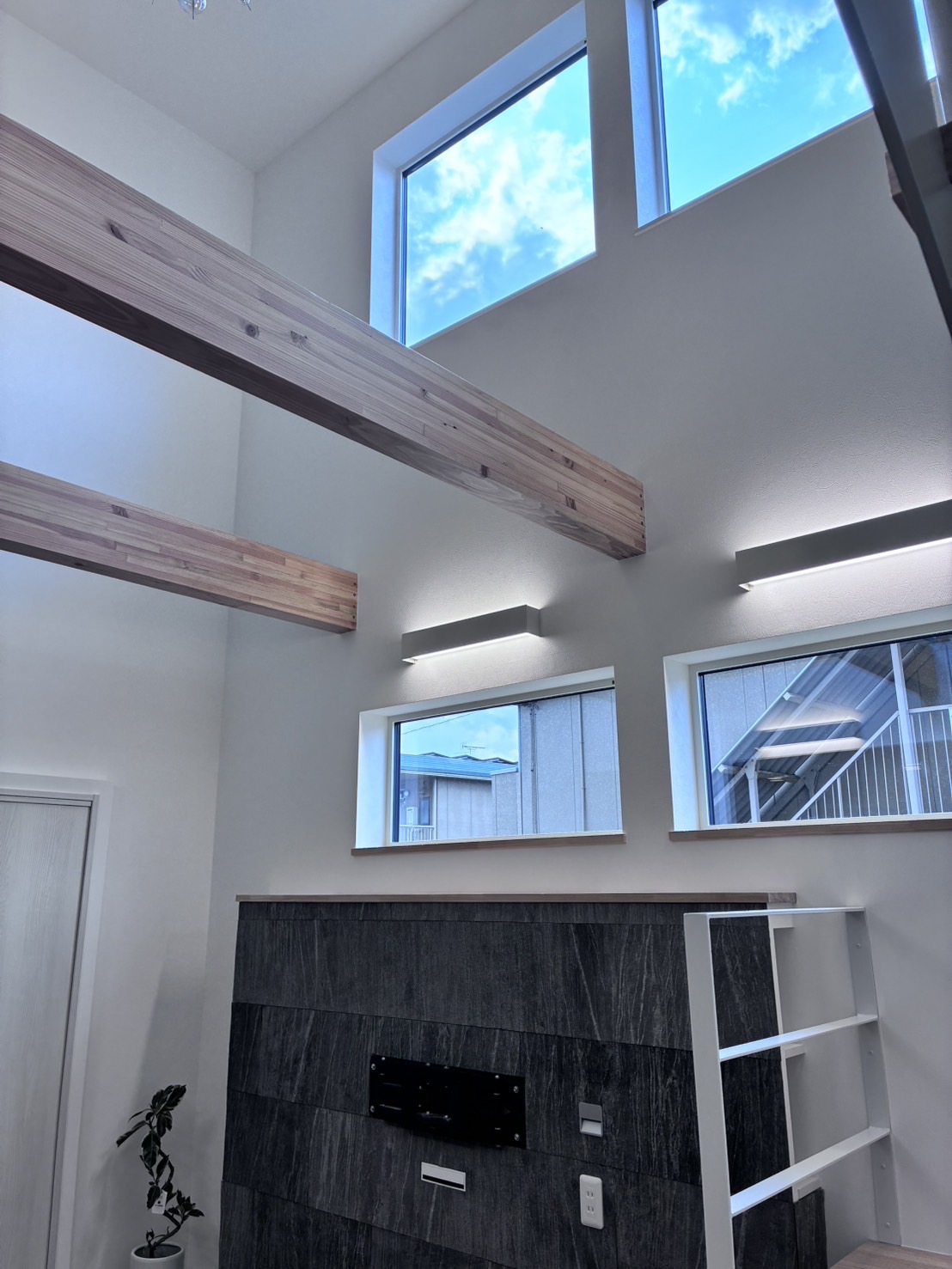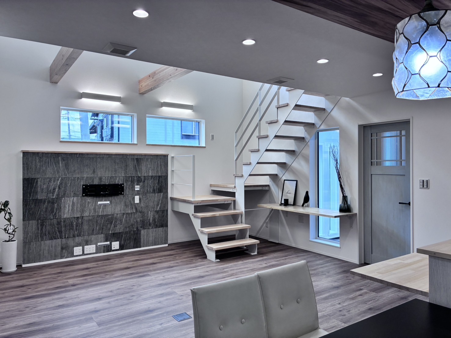 リビングへ向かうと19帖のLDKと吹抜け。